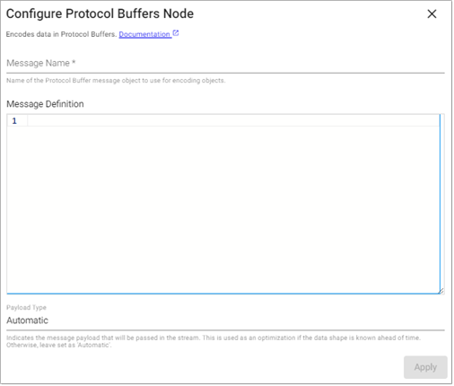 The Protocol Buffers operator serializes data into Protocol Buffers.
