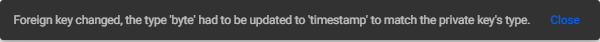 If the type is changed, after it has been assigned, the type of the data column referencing the Foreign Key is updated, and a message is displayed.