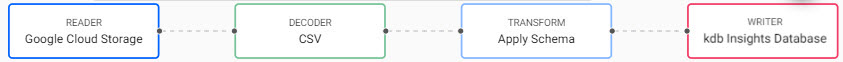 You are now ready to deploy your pipeline. Deploying the pipeline reads the data from its source, transforms it to a kdb+ compatible format, and writes it to a kdb Insights Enterprise database.